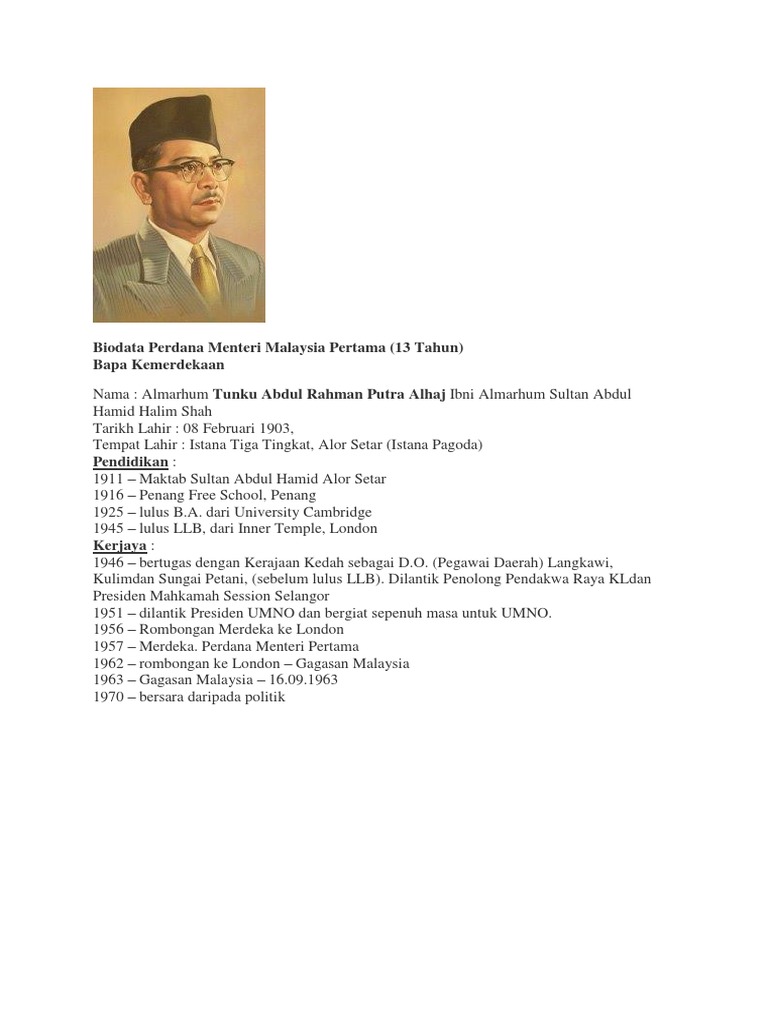 Perdana Menteri Malaysia Kelima / Y.t.m tunku abdul rahman putra alhaj.. Pengumuman senarai jemaah menteri bagi kabinet baharu itu dibuat selepas lebih seminggu beliau memegang jawatan perdana menteri kelapan susulan. Perdana menteri malaysia ketiga 15 januari 1976 hingga 16 julai 1981. Beliau digelar sebagai bapa pembangunan modal insan malaysia. Perdana menteri malaysia adalah adalah kepala pemerintahan tertinggi di malaysia. Beliau dilahirkan di johor bahru, johor pada 12 februari 1922 dan merupakan cahayamata kepada dato onn jaafar dan datin halimah hussein.